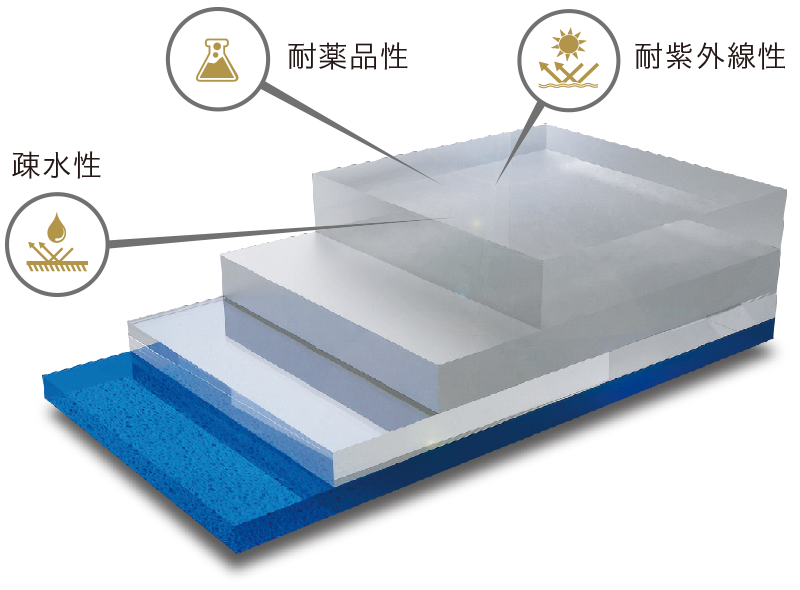 また、優れた耐紫外線性能と耐薬品性能(酸性雨)で、長期にわたり退色を防ぎます。