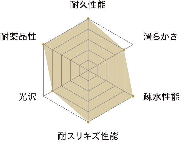 このテクノロジーにより非常に強い強度と対科学性・対UV・IR性能、優れた光沢と撥水性を生み出す皮膜を形成し、メンテナンス性に優れたコーティングを実現しました。